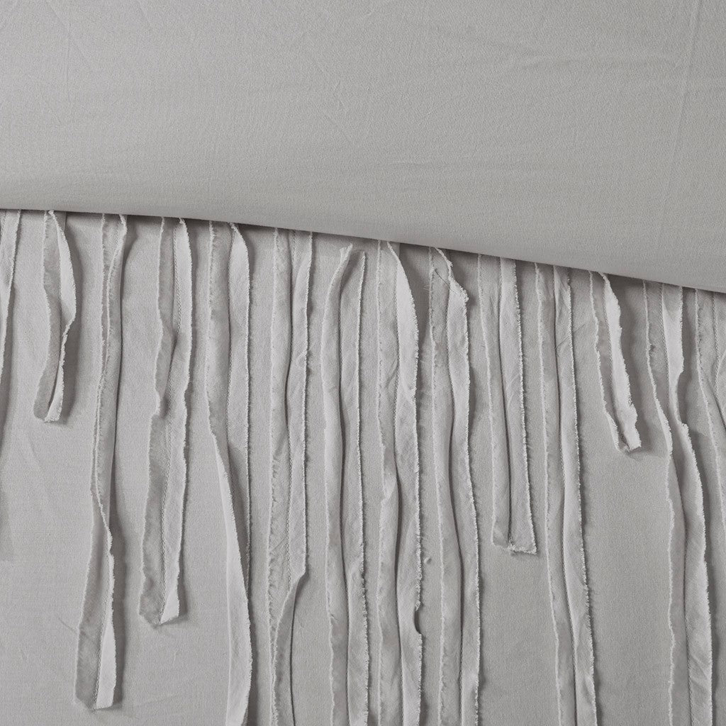 Urban Habitat's Paloma Cotton Duvet Cover Set offers a simple, chic update to your bedroom decor. This soft 100% cotton grey duvet cover features self-fabric taping strips sewn to the top of the bed that add dimension and create a contemporary look. The matching shams (1 in Twin/TwinXL) mirror the design of the cotton duvet cover, while two decorative pillows complete this beautiful contemporary bedding set. Made from enzyme washed fabric for increased softness, this bedding set is OEKO-TEX certified, meaning it does not contain any harmful substances or chemicals to ensure quality comfort and wellness. Button closures on the duvet cover secure a padded insert (NOT included) within the duvet cover and internal corner ties prevent it from shifting. Items in the set may come in a rolled or compressed packaging, which will need to be fluffed up or steam ironed before use to remove wrinkles.
