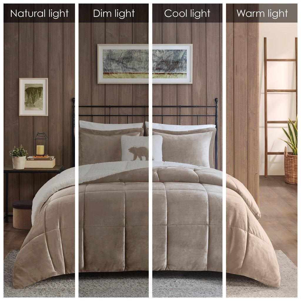 Alton Plush to Sherpa Down Alternative Comforter Set - Taupe / Ivory - Twin Size