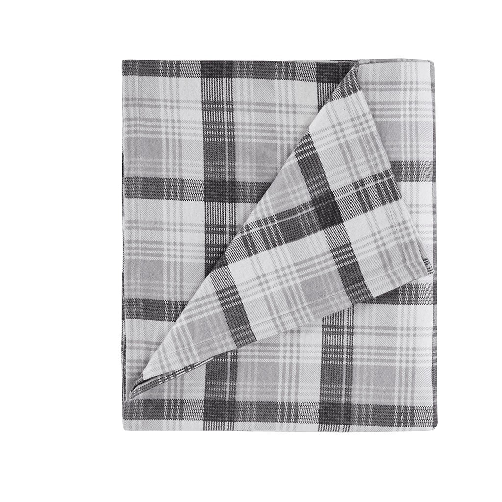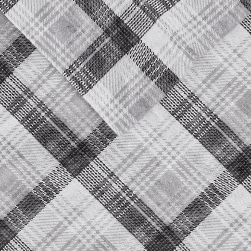 Cotton Flannel Sheet Set - Grey Plaid - Queen Size