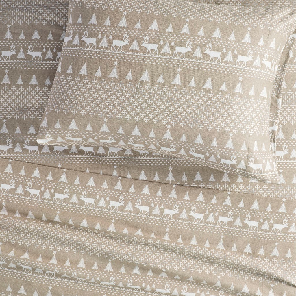 Cotton Flannel Sheet Set - Tan Winter Frost - Queen Size