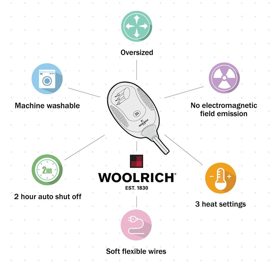 Immerse yourself in comfort in the Woolrich Heated plush to berber throw. This heated throw utilizes state of the art Secure Comfort heated technology featuring 3 heat settings that adjusts the temperature of your blanket based on overall temperature, spot temperatures and the ambient temperature of your room, ensuring a consistent flow of warmth. This unique technology also emits virtually no EMF emissions, so you can snuggle up with confidence. This throw is oversized, nearly a foot larger in the length and width compared to standard heated throws. The ultra soft plush fabric combines with billowy berber in this cozy, comfortable throw. Machine washable for easy care, this heated throw is OEKO-TEX certified, meaning it does not contain any harmful substances or chemicals to ensure quality comfort and wellness.Includes manufacturer's 5-year warranty.