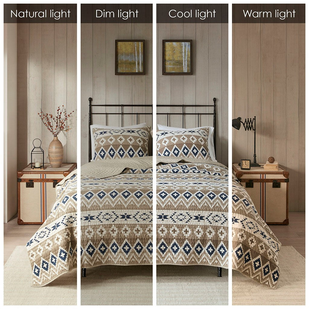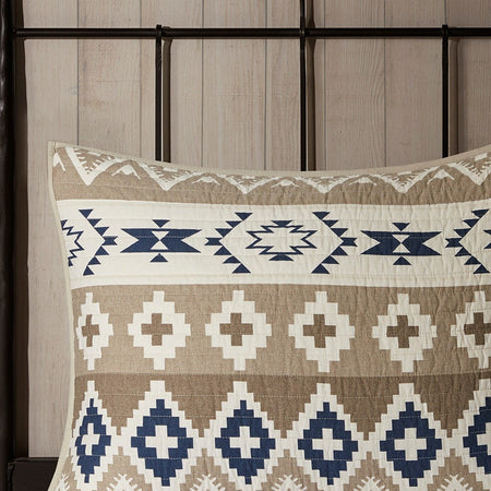 Montana Printed Cotton Oversized Quilt Mini Set - Tan - Full Size / Queen Size