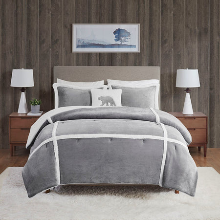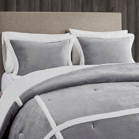 Orlen Plush to Sherpa Comforter Set - Grey - Full Size / Queen Size