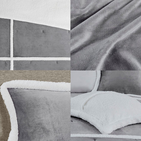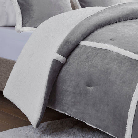 Orlen Plush to Sherpa Comforter Set - Grey - King Size